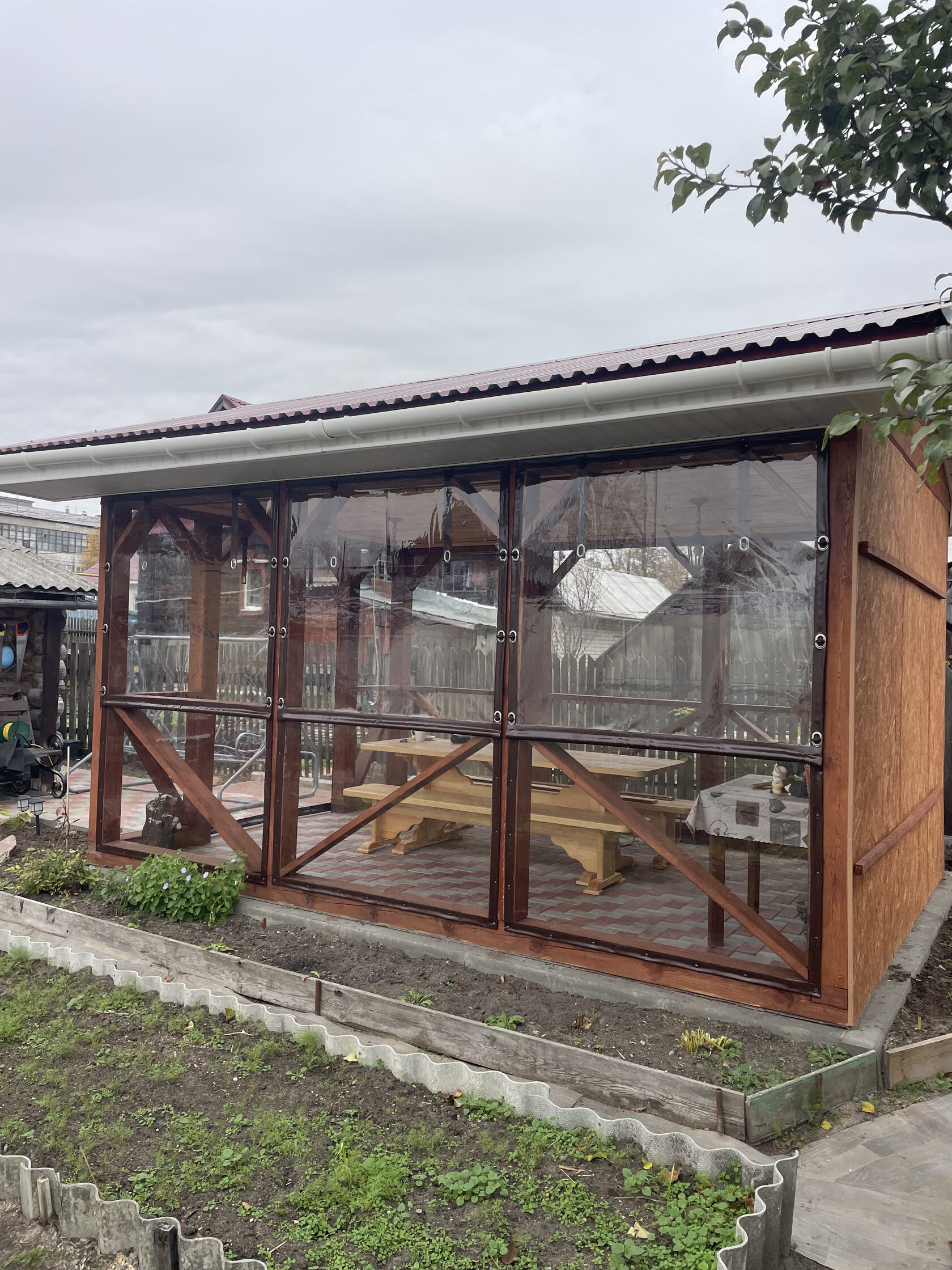 Наш специалист-замерщик выезжает на замер со всеми необходимыми образцами. Вы сможете на месте выбрать цвет канта, материал, крепеж и конфигурацию конструкций, которые идеально подойдут именно для вашей беседки